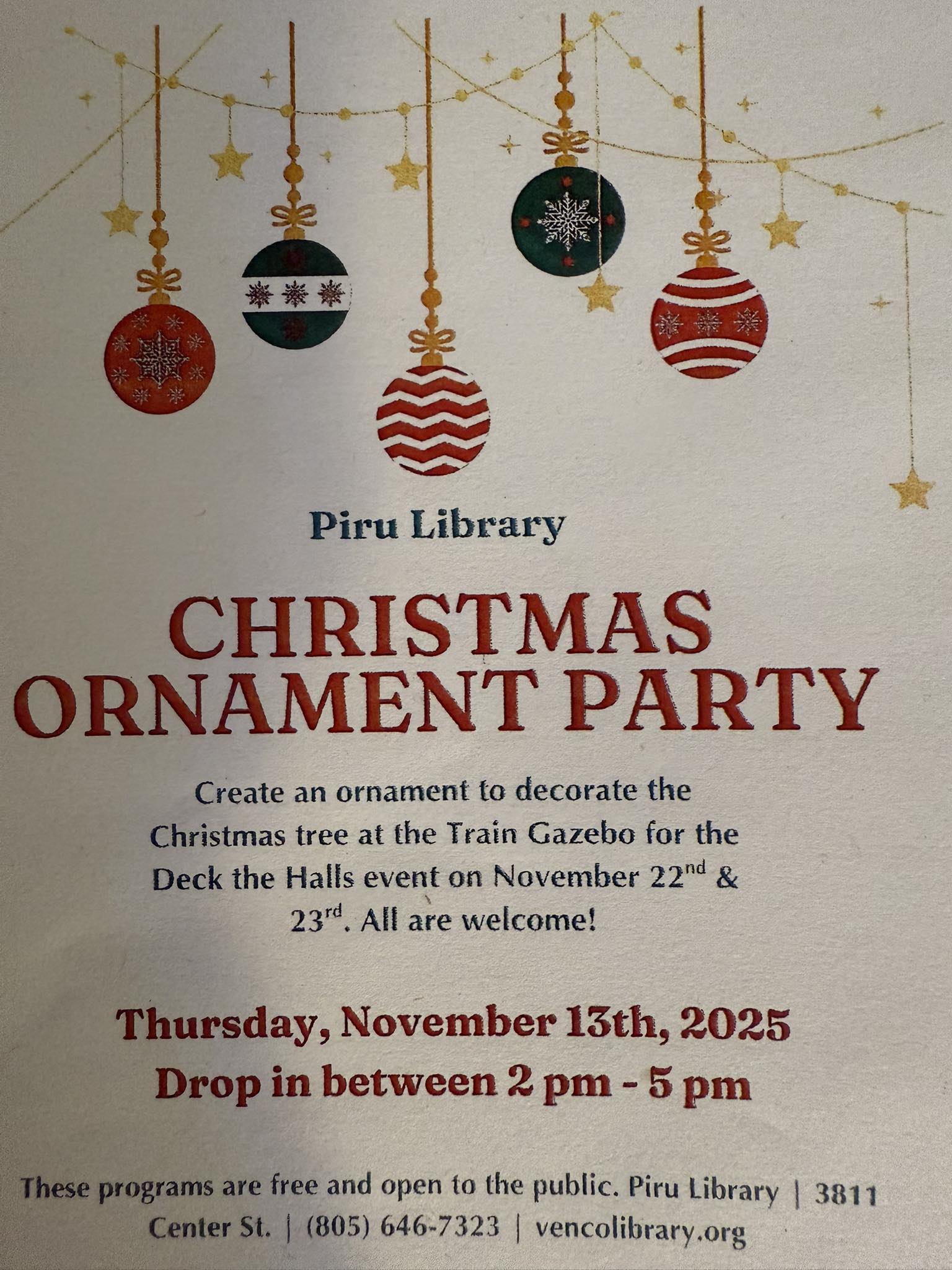 Make Ornaments, enjoy a snack while listening to Christmas music